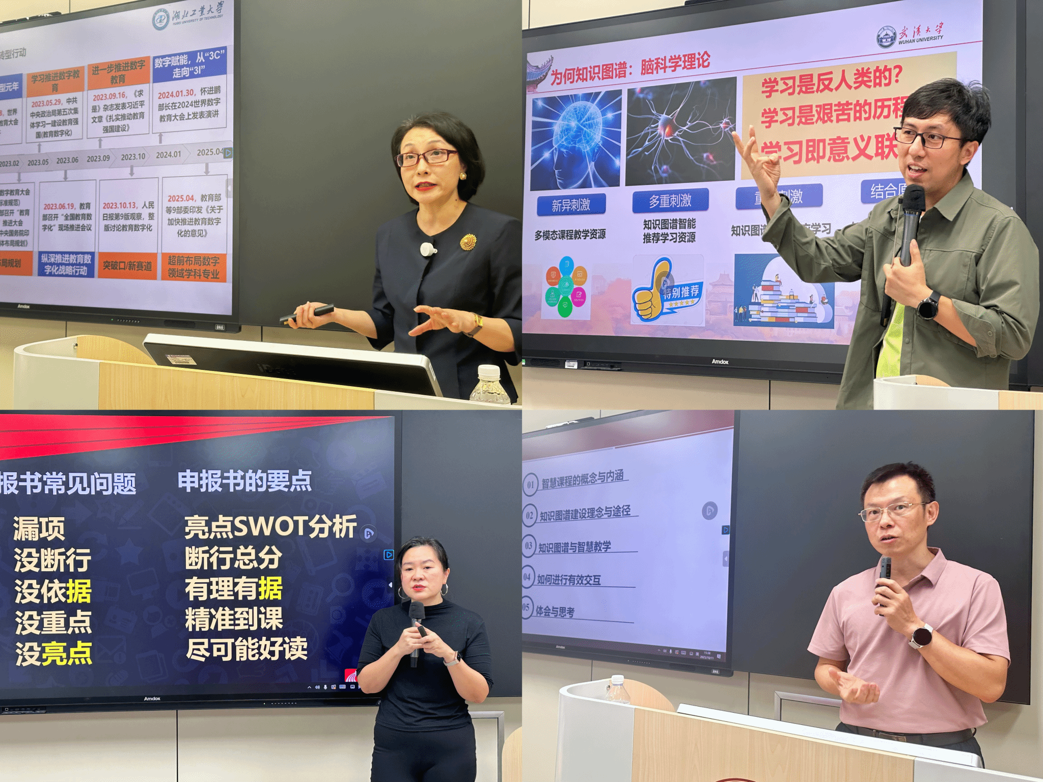 培训日程紧凑且内容丰富,两天 8 场专题讲座覆盖 “理论 - 方法 - 实践” 全链条。学院特别邀请了来自武汉大学、武汉纺织大学、湖北工业大学、教育科技企业的 8 位权威专家,围绕智慧课程建设、AI 赋能教学、知识图谱应用等主题,带来兼具理论高度与实践价值的专题分享。