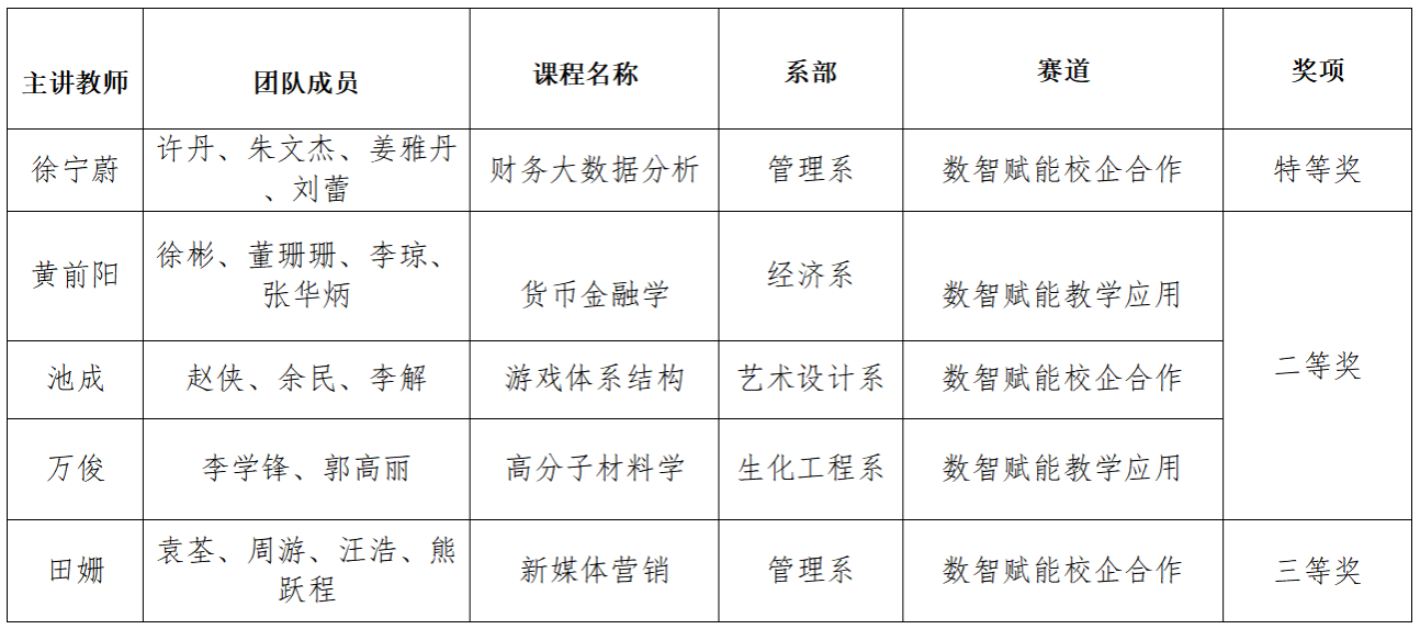 5月15日至16日,2025世界数字教育大会系列活动之一——首届全国高校教师数智教育创新大赛决赛在武汉大学举行。我院管理系徐宁蔚教师团队凭借卓越的专业实力与创新精神,荣获国赛特等奖,成为10个国赛特等奖获得者中的唯一民办高校选手。学院其他4支参赛团队获得二等奖3项、三等奖1项,学院荣获优秀组织奖,入围数量及获奖比例位列全国同类院校第一,为学院发展再添辉煌。