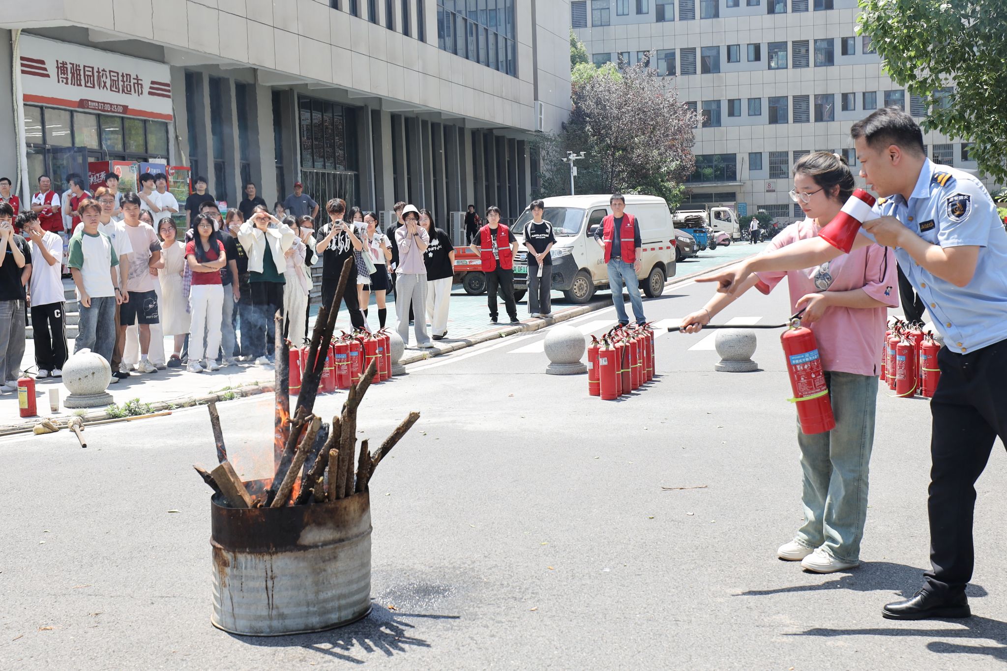 消防教官结合典型案例,为师生们进行了防灾减灾知识培训,详细讲解了火灾预防、应急逃生及灭火器材使用等要点。培训结束后,全体人员在教官指导下进行了消防演练,模拟火场疏散及灭火实操,进一步巩固了所学知识。