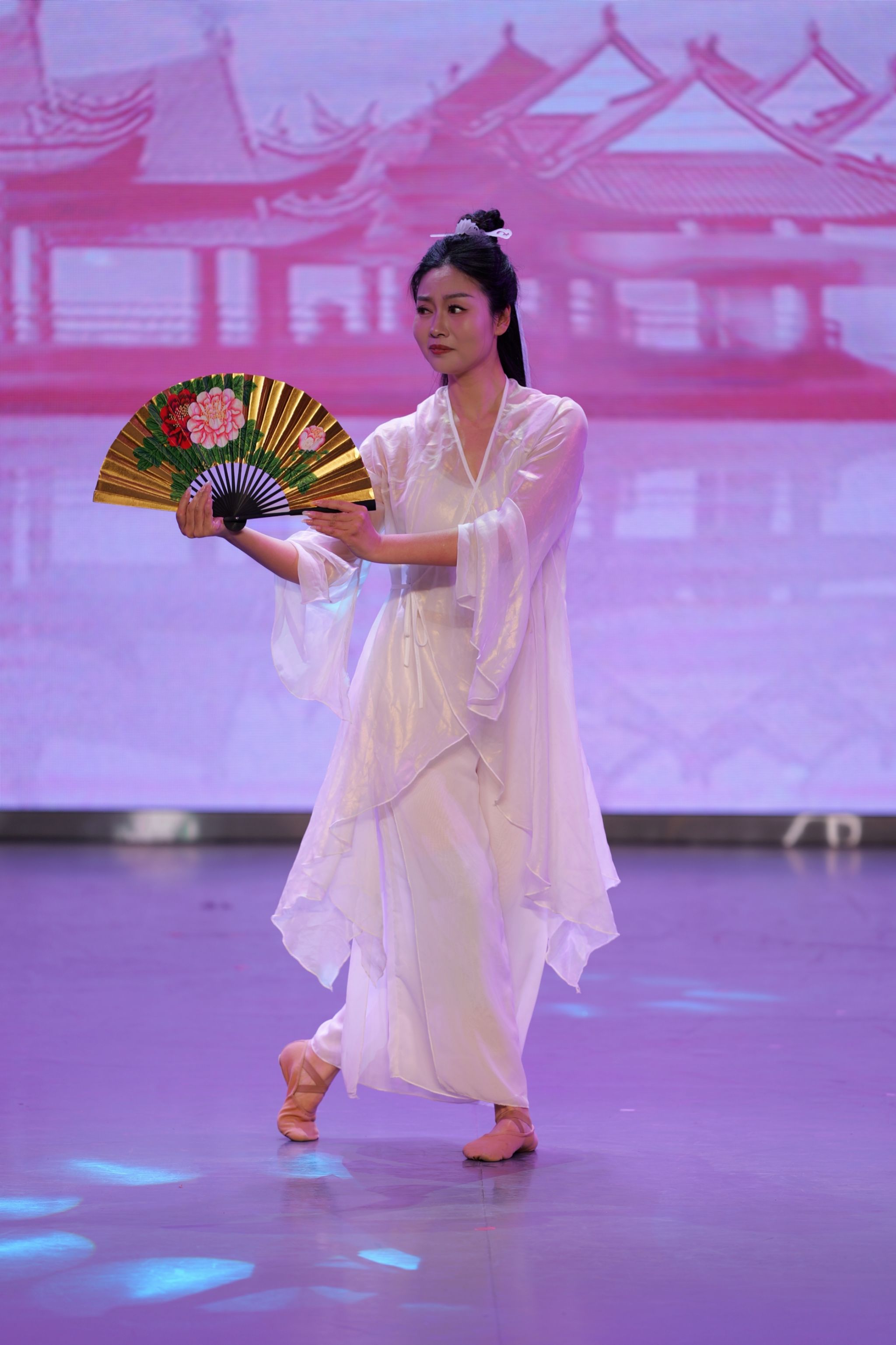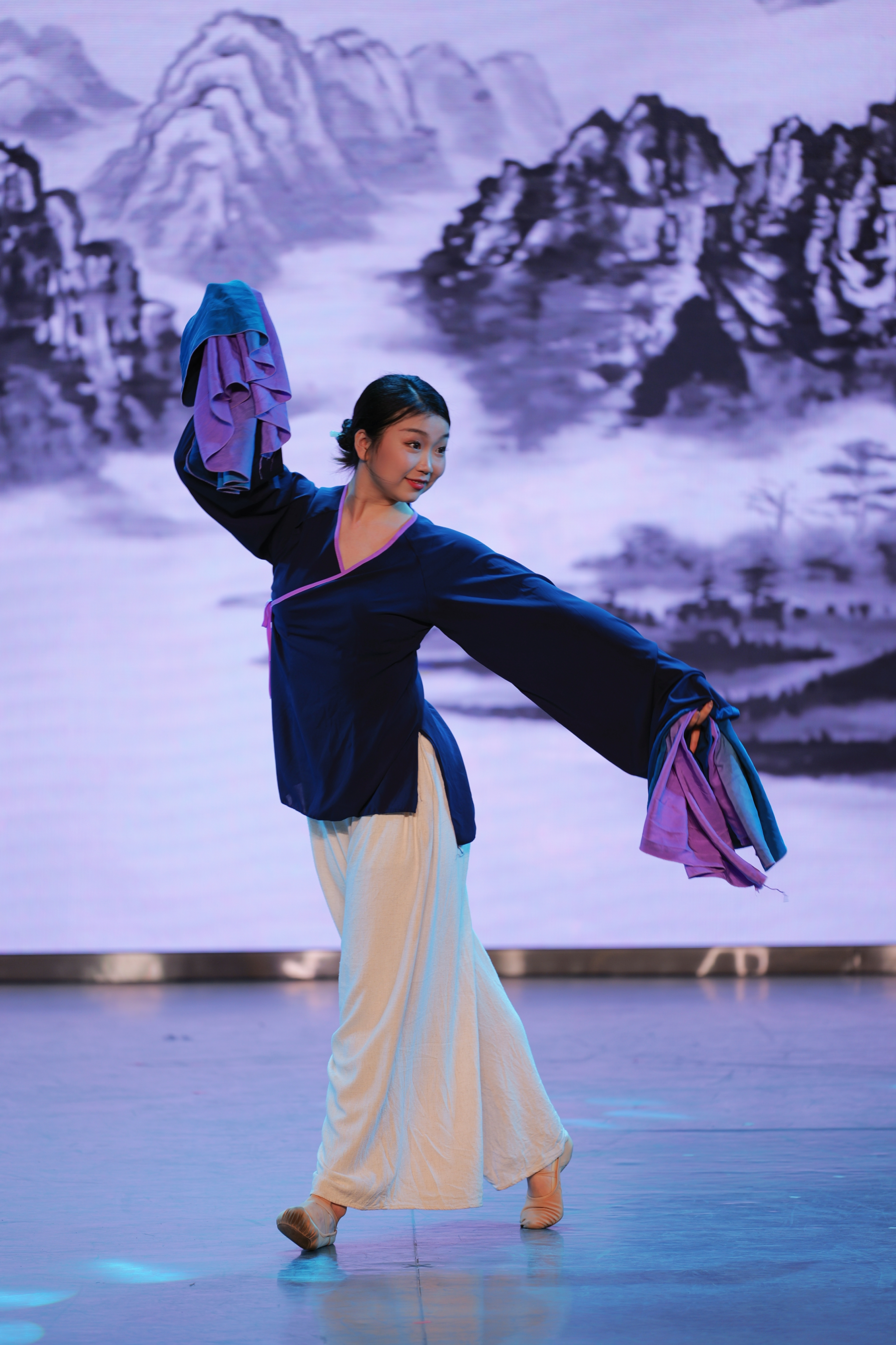 在第四篇章“焕新·华夏韵”中,大学生艺术团楚韵民乐团带来国乐合鸣《好汉鸣笛》,将传统民乐与现代电子结合,将“好汉歌”的侠义精神,升华为当代青年不惧试错、突破陈规的成长宣言。随后,艺术团专兼职老师带来国韵音诗舞《千载遇知音》,通过折扇、水袖、剑术三种传统艺术载体,展现中华文化的浪漫诗意与精神品格。最后,由大学生艺术团金石合唱团带来混声合唱《世界赠予我的》《一路生花》,用温暖、励志的歌词和旋律,以青春之声演绎新时代青年“脚踏山河、心向寰宇”的奋进之姿。