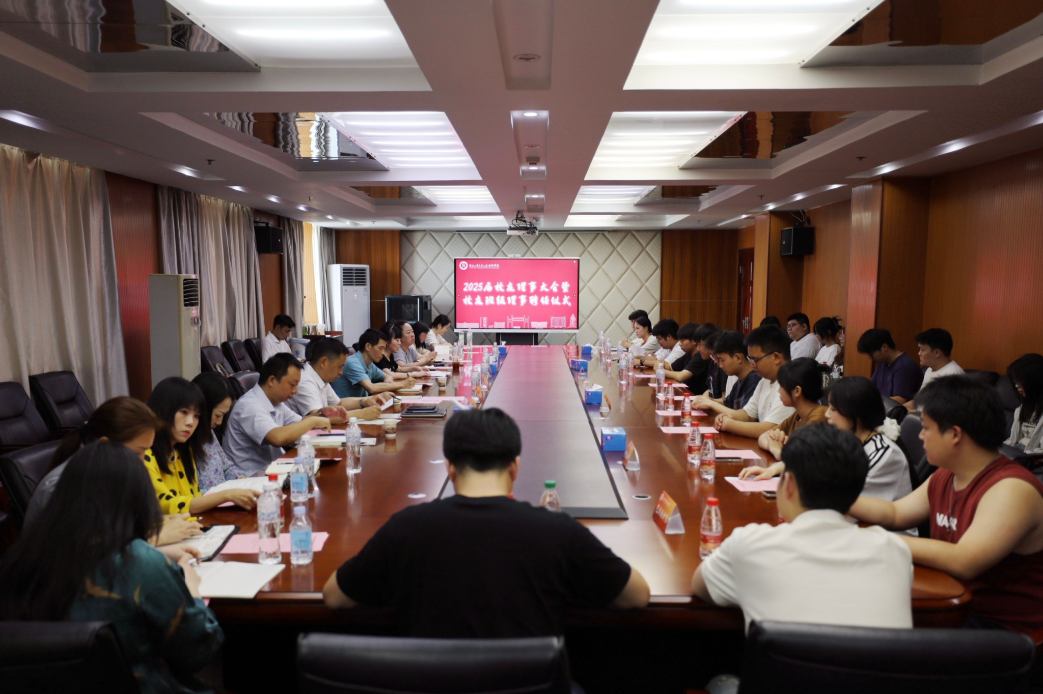 6月5日下午,学院在行政楼五楼会议室召开2025届校友班级理事代表大会暨聘任仪式。湖北工业大学社会资源处处长王俊、学院院长张业鹏、党委副书记曹仲伟出席会议。各系党总支副书记及20位新聘任校友班级理事代表参加会议。