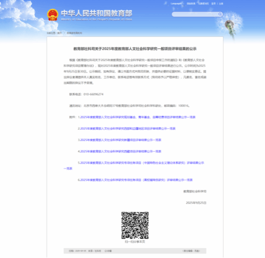 9月25日,教育部社会科学司公布了《2025年度教育部人文社会科学研究规划基金、青年基金、自筹经费项目评审结果》。我院公共课部颜佳玥老师主持的《数智时代大学生发展焦虑的美育干预机制与纾解路径研究》成功获批教育部人文社科青年基金项目,这是继2024年我院首次获批教育部人文社科规划基金项目后,成功实现“国家级”科研项目不断线。