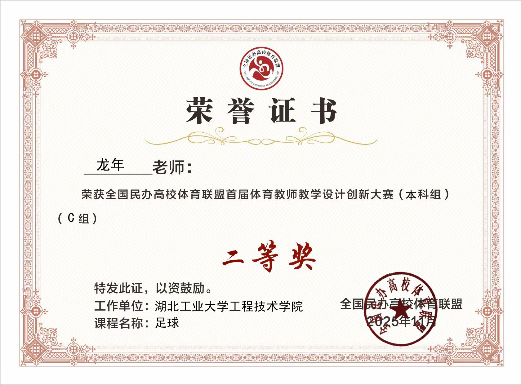 11月21日至24日,全国民办高校体育联盟首届体育教师教学设计创新大赛在郑州升达经贸管理学院圆满落幕。体育课部龙年老师凭借“知识图谱+线上线下混合式教学”的创新设计,斩获二等奖。