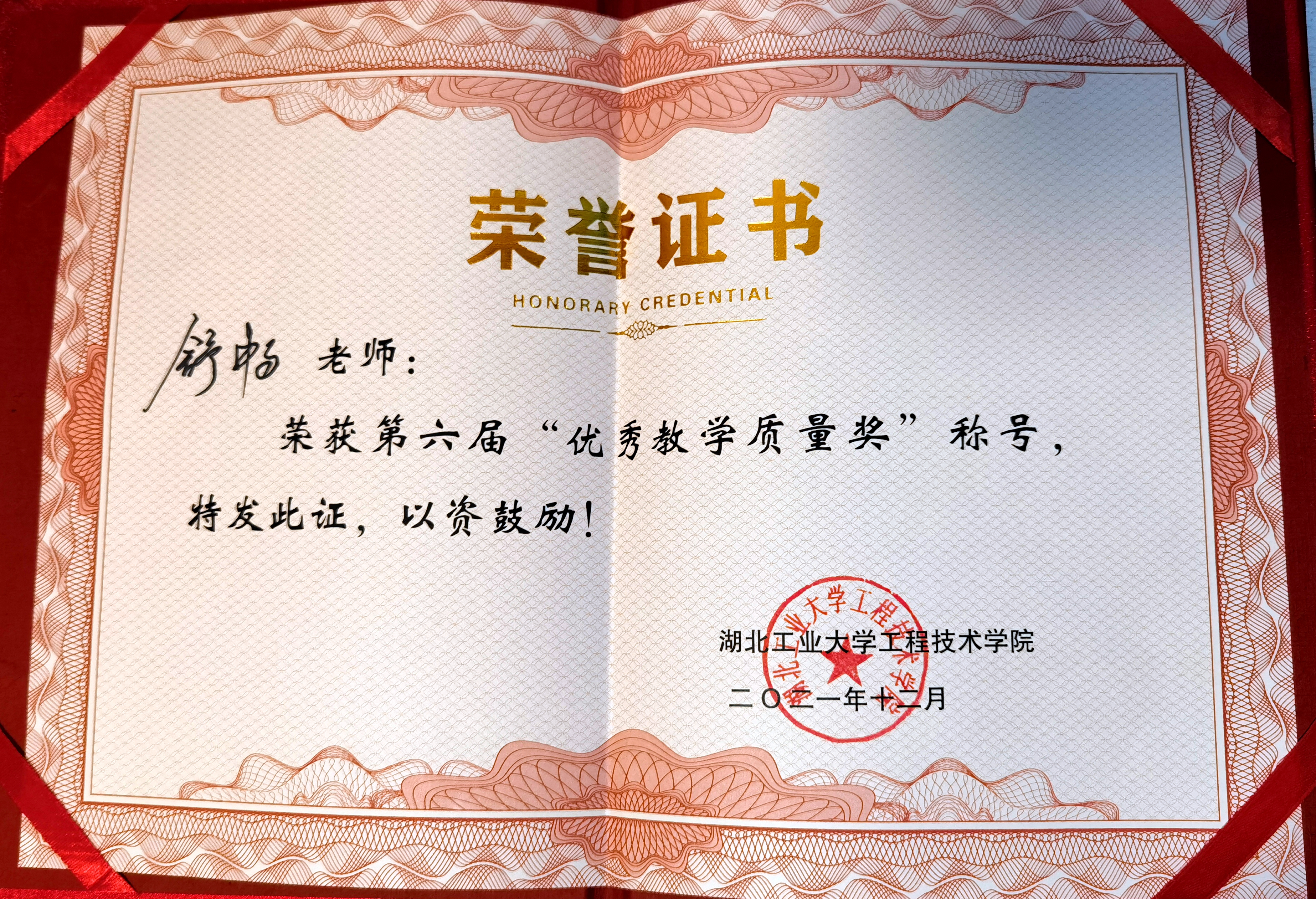 曾获2024年获湖北省思政课教学竞赛省级三等奖,2022年获湖北省高校思政课教学展示暨优秀课程省级三等奖;多次获评学院“毕业生心目中的好老师”“工程烛光——学生心目中好老师”称号,多次获评学院“教学质量奖”,指导学生参加全国“互联网+”创新创业大赛省级一等奖。